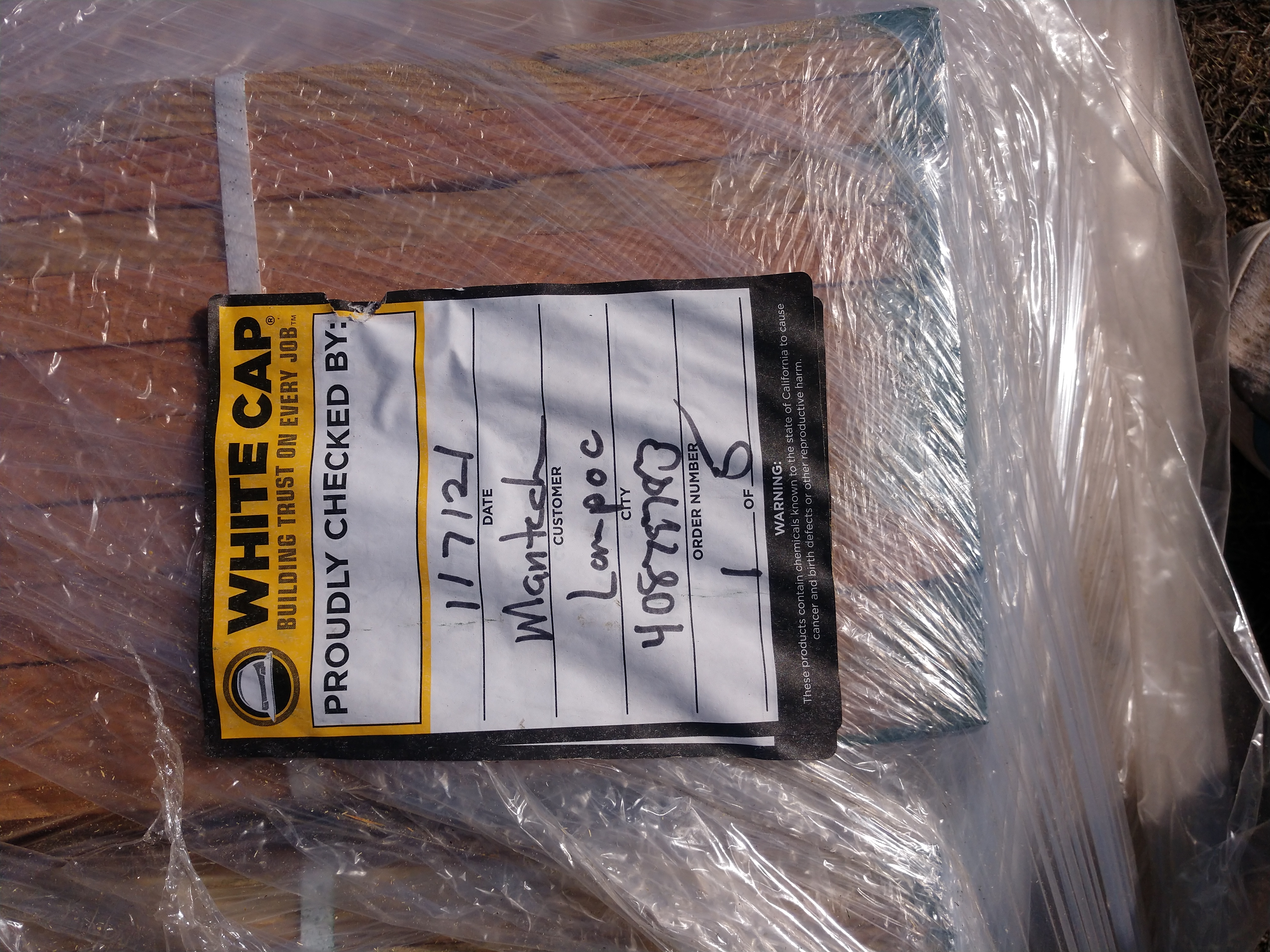 Info: Label of the wood stacks showing who might be performing the restoration